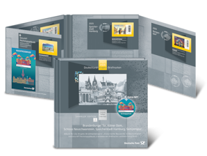 Hochwertiges folienveredeltes Hardcover-Album mit unbestückten Einstecktaschen zur Aufnahme aller 5 bisher erschienen 5 Kryptomarken-Ausgaben. Exklusives Sammlerstück mit einem zusätzlichem NFT "Reichstagsgebäude", einem Hologramm der Briefmarke "Reichstagsgebäude Berlin" von 1986 sowie allen 5 Sondermarken der Serie "Historische Bauwerke in Deutschland" (Bund 2023 - 2025, postfrisch in Klemmtaschen).