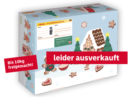 Auch unsere beliebten DHL Packsets haben wir für Sie zu Weihnachten besonders schön gestaltet. Sie zeigen weihnachtliche Lebkuchenfiguren und sind perfekt geeignet, um liebevoll verpackte Geschenke sicher und stilvoll zu versenden.